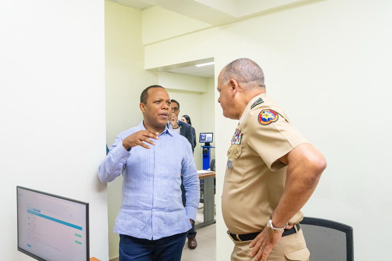 El ministro de Defensa, teniente general Carlos Antonio Fernández Onofre, ERD, destacó la eficiencia y calidad del servicio ofrecido por el INTRANT durante la jornada de emisión de la nueva licencia de conducir en la oficina habilitada dentro del Ministerio de Defensa.